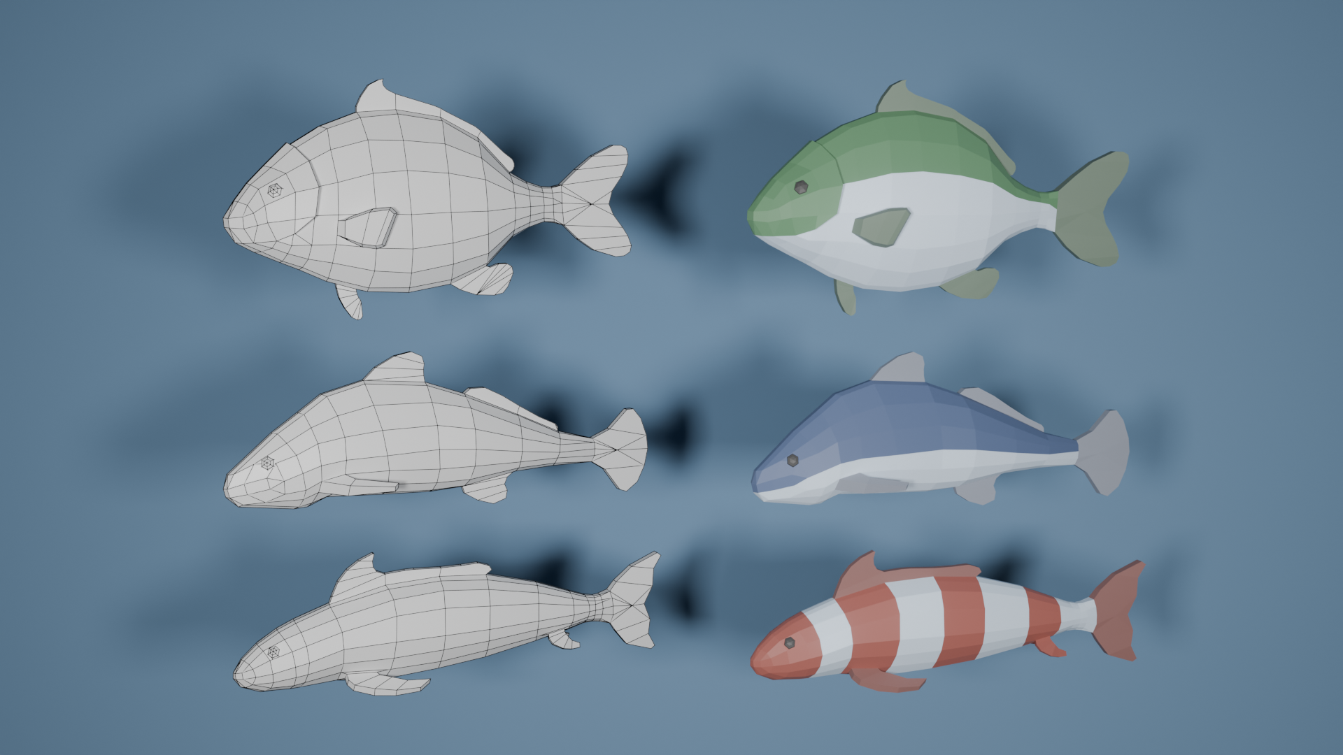 This free Low Poly Fish pack includes 3 optimized fish models carefully selected from my full Fishing Pack. If you like these models and want to access the complete collection with boats, fishing gear, and 10 different sea creatures, make sure to check out my full Fishing Pack available on my profile.